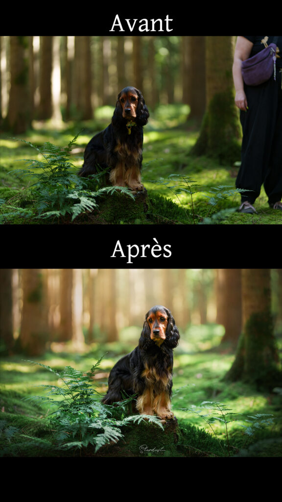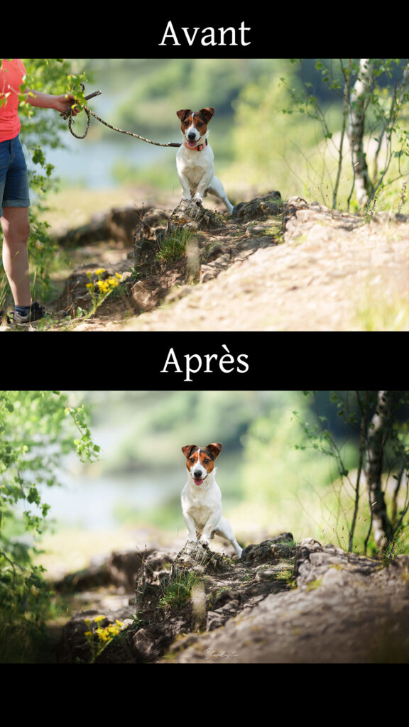 Bien sur qu’on va effacer des choses, mais rien d’important. On va enlever ce qui gène la lecture de la photo (petites branches, une poubelle au loin, un panneau de signalisation, le collier du chien, un bout de votre chaussure qui dépasse dans le champ de vision , …).