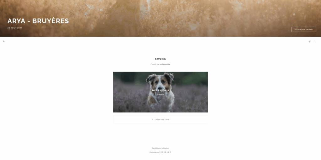Lorsque vous cliquez sur le lien que vous recevez par e-mail, vous arrivez sur l’accueil de votre galerie personnelle.