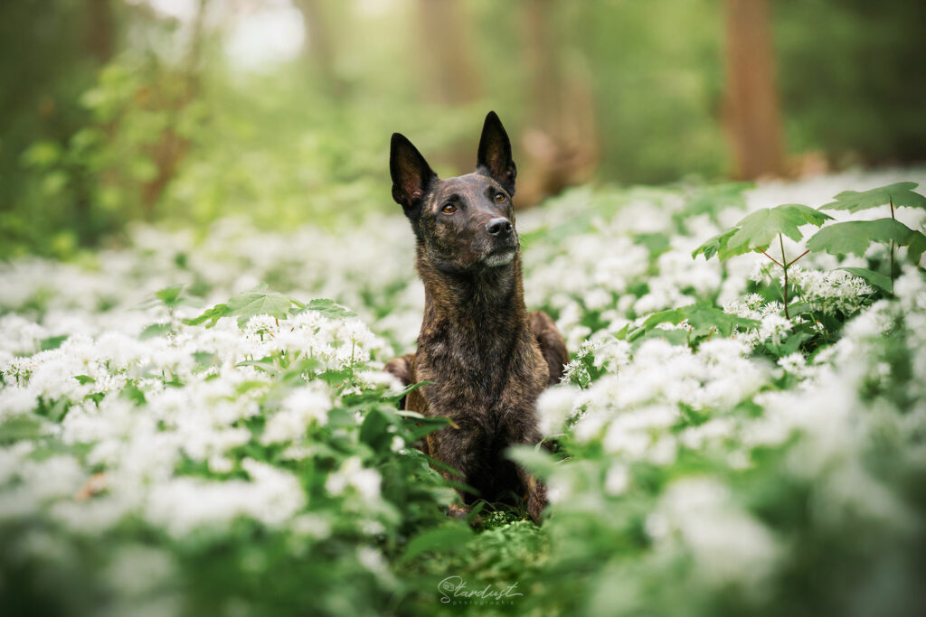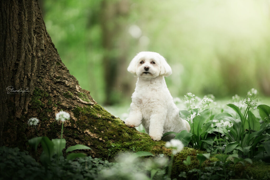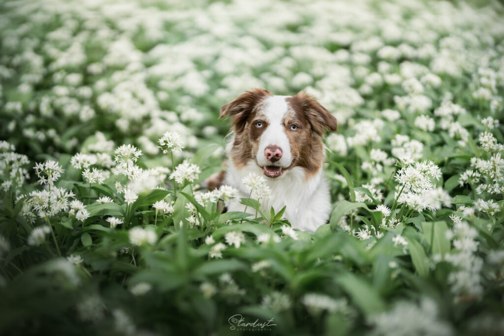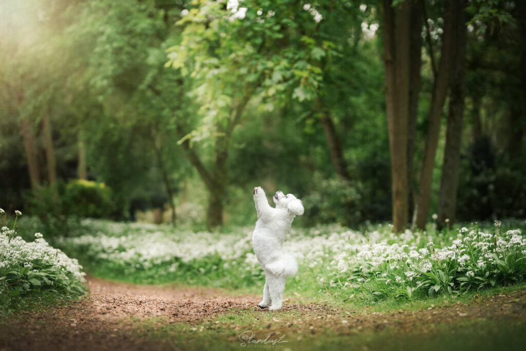 Dans un parc oĂč les chiens sont autorisĂ©s en laisse, profitez d’allĂ©es bordĂ©es de fleurs d’ail des ours (blanches) pour un dĂ©cor trĂšs printanier.