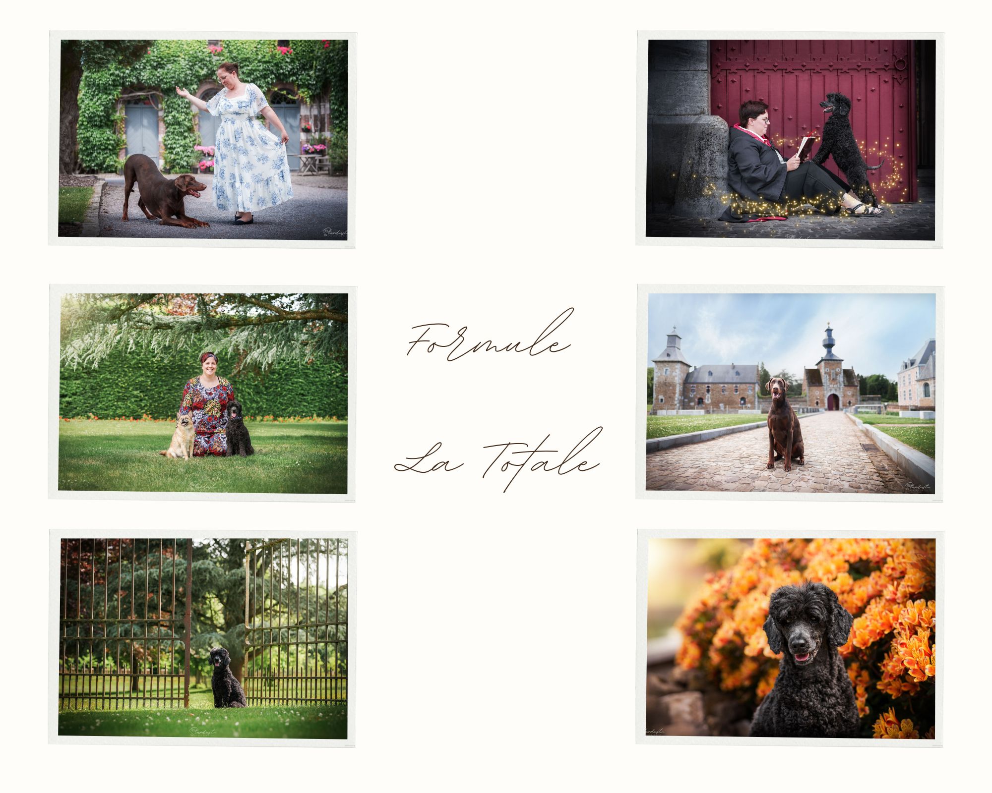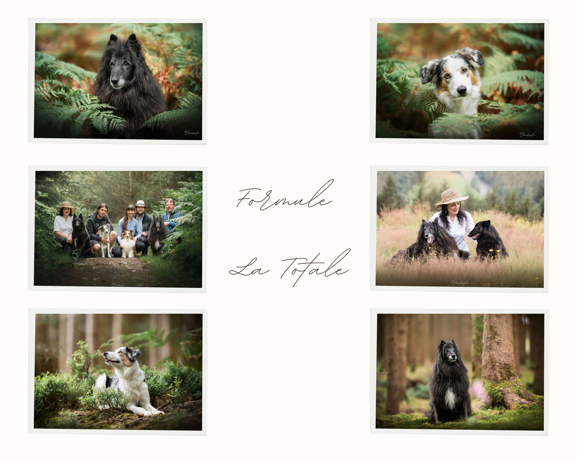 - Séance mixte (par ex. une série sur un terrain d’agility + une série aux alentours avec des portraits en famille)