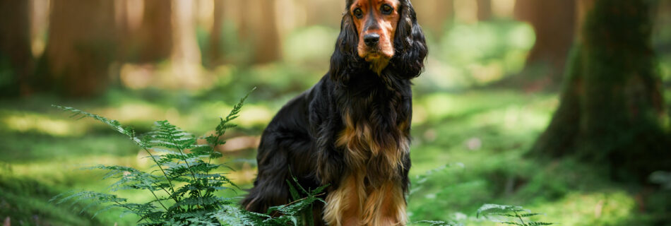 Un décor très vert qui va à merveille à ce petit cocker tout calme.