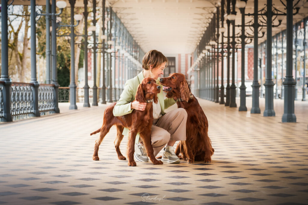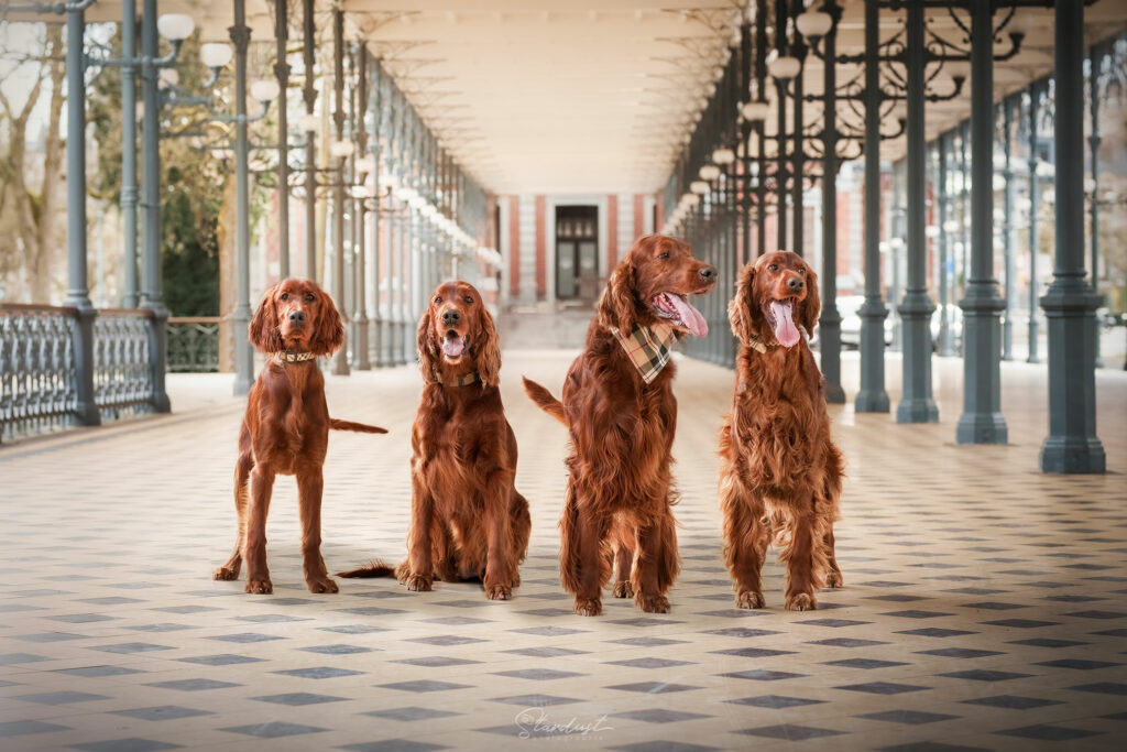 Les setters irlandais du Bois d’OrlĂ©an SĂ©ance pour l’Ă©levage du Bois d’OrlĂ©an avec la mise en valeur de certains de leurs reproducteurs.