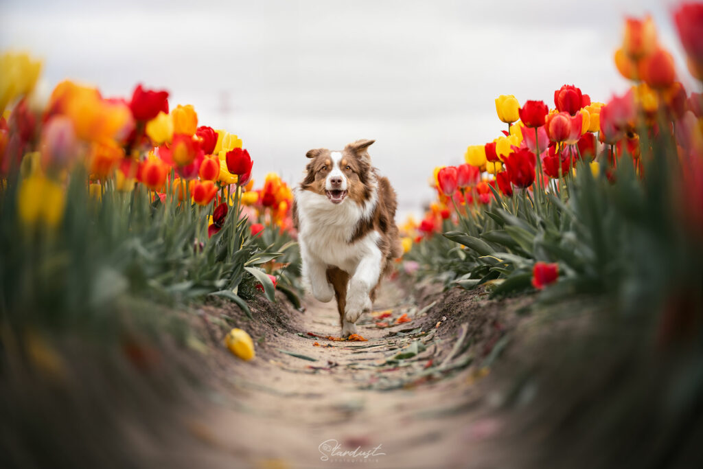 Champs cultivé de tulipes, pour des photos aux couleurs éclatantes!